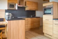 Unsere Zimmer sind mit naturbelassenem Fichtenholz kombiniert mit Buchenholz möbliert.